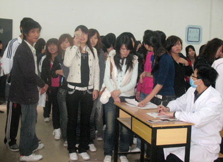 为了构建我院健康、平安校园,了解新生的身体素质,防患于未然。2009年10月26日上午8:00为期两天的09级新生体检工作在我院二号教学楼一楼展开。