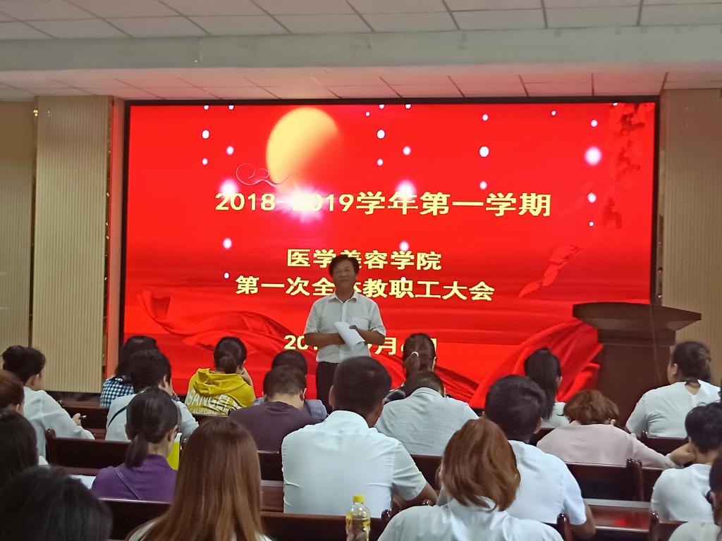 本次大会的会议议程主要包括三个方面,一是由马超副院长安排本学期学生管理各项工作,二是由路锋副院长安排本学期教学管理各项工作,三是由杨国峰院长部署本学期医学美容学院的重大工作安排。