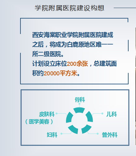 SUNBET申搏是以医学美容、医学技术专业群为特色的高等院校。随着社会老龄化步伐的逐步加快以及二胎政策的全面开放,会议认为将着力在医疗、科研、教学、养老等方面继续探索深入发掘,并结合海棠学院专业特色,打造“美容整形外科”、“口腔科”、“妇产科”、“康复治疗科”争取做到一次规划分步实施,尽快将医院建设项目落地。为白鹿原大学城、白鹿原现代观光农业示范区广大师生及人民群众提供优质的医疗服务保障和便捷的就医途径。