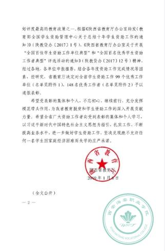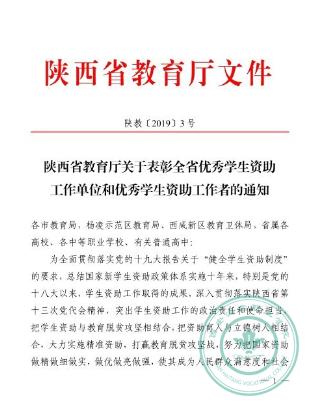 2019年1月8日,陕西省教育厅下发通知公布并彰了“全省优秀学生资助工作单位”。