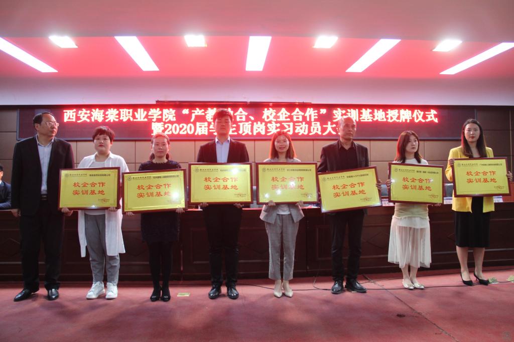 为深入贯彻落实党的十九大精神,深化产教融合,校企合作新模式,5月10日下午,学院“产教融合、校企合作”实训基地授牌仪式暨2020届学生顶岗实习动员大会于学术报告厅顺利召开。学院冯居秦院长,郭国庆、杨国峰副院长,海棠医药科技有限公司鹿婵总监,杭州娇芙达生物科技有限公司王涛经理,杭州虞美人健康管理有限公司朱凤萍经理等领导出席会议,学院2020届医学美容技术专业学生代表参加此次大会。会议由学院杨国峰副院长主持。