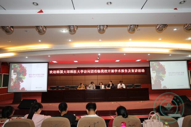 下午,韩国大邱韩医大学访问团于我院学术报告厅开展学术报告及宣讲会,我院组织全体教师以及医学美容学院350余名学生参加本次报告会。