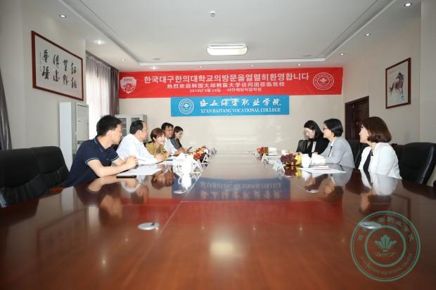 5月24日,大邱韩医大学对外交流副校长权普永、美容管理产业系教授金知姬、国际交流部科员金贞香来西安海棠学院进行交流访问。我院院长冯居秦、副院长杨国峰、创业学院院长马敬涛、学生代表李婷参加了会见。