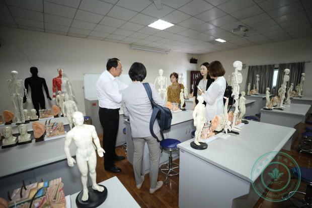 随后,冯居秦院长带领权普永副校长一行参观了学院医学美容实验实训中心、中医美容博物馆、医学技术实验实训中心,并为嘉宾进行详细说明和介绍。嘉宾们表示对校园环境和实训设备印象非常深刻,对我院能够为学生创造这样优质的教学环境表达了赞誉之情。
