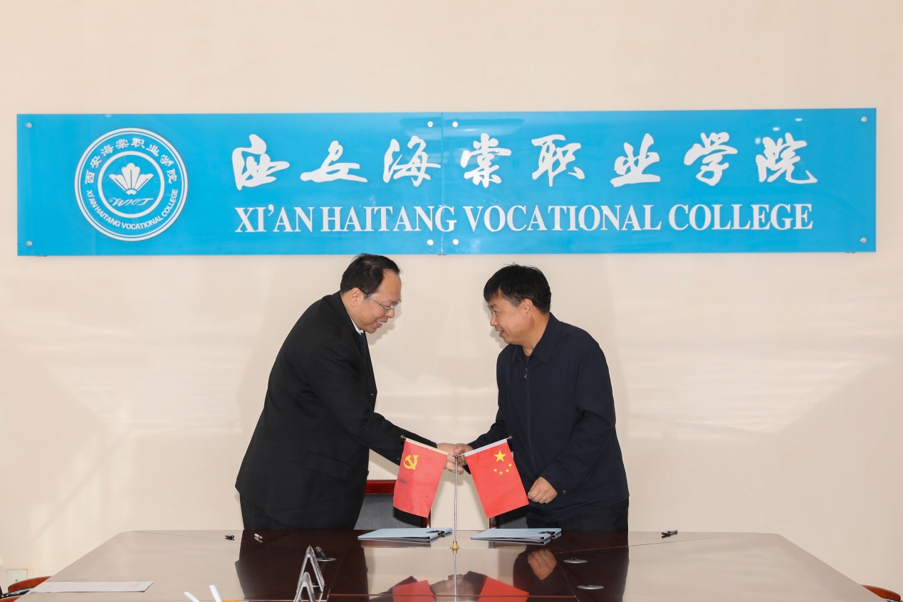2019年10月30日,志丹县教育科技体育局局长聂德俊、志丹县职业技术教育中心校长康宝荣一行来访我院,就中高职合作办学进行洽谈,并签订《合作办学协议书》。西安海棠医药科技集团董事长、SUNBET申搏理事长王卓,SUNBET申搏院长助理王智锦、创业指导处处长王小科、学院招就专员石博等学院有关领导及同志热情接待并陪同洽谈参观。