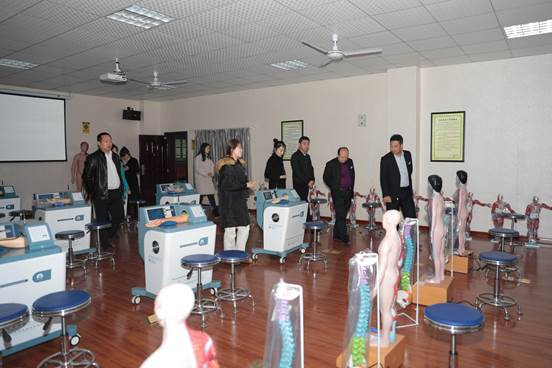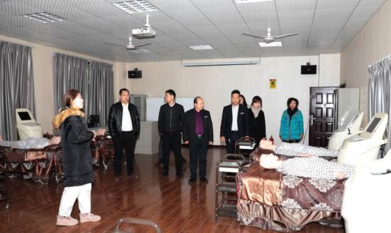 张光明副总裁一行人先后对我院医学美容实训中心、中医美容博物馆、医学技术实训中心、大学生创业孵化项目——海棠中医美容医院,以及学生公寓进行了参观。在参观中,张光明副总裁表示SUNBET申搏专业特色鲜明,学院实力雄厚,尤其是在中医美容、康复、医技类专业的设施设备先进、全面。陕西华山教育集团副总裁张光明表示希望给陕西华山集团旗下的三十多个分校学生学历做一个提升,SUNBET申搏专业有特色,希望通过双方的交流合作,实现专业开拓、人才培养及中高职贯通教育的合作共赢。