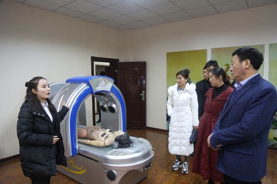 一行人先后对我院医学美容实训中心、中医美容博物馆等学院主要教学场所进行了参观。