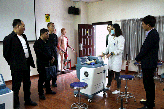 郭传山副校长一行参观了校园环境、医学美容实验实训中心、中医美容博物馆、医学技术实验实训中心、学生宿舍等,详细了解了我院专业设置、教学管理、师资建设等情况。一行领导对我院浓厚的办学历史、办学规模、实训条件、校园文化建设等深表赞许。
