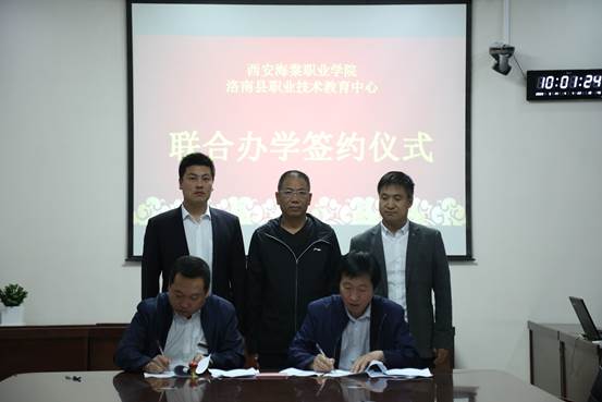 签约仪式上,双方就人才培养模式、合作办学发展、专业教师管理等问题进行了磋商,达成共识。我院院长助理王智锦与洛南县职教中心校长焦占武签署合作办学协议。