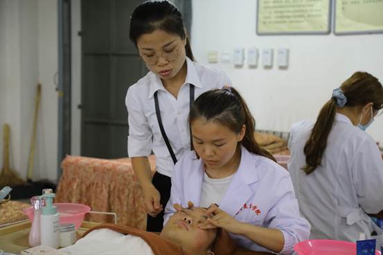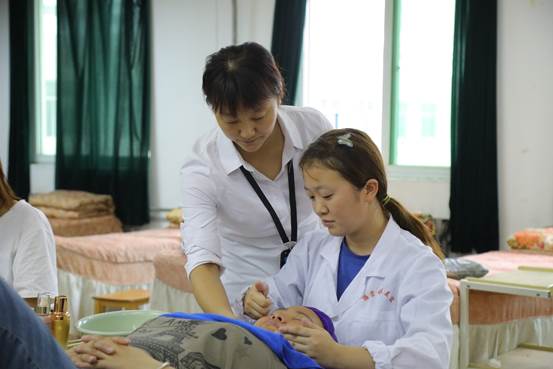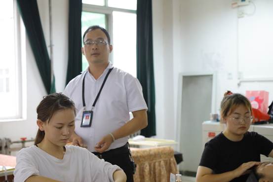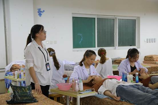 郭文俊科长在观看了学生的实操练习后,她强调,全体参训师生一方面要加强实操技能的操作训练,在训练中注意细节和操作流程;另一方面要温习已经学过的理论知识,理论指导实践,实践检验理论,做到理论知识丰富,实操技能熟练,美容手法要勤加练习,练习十遍百遍,做到精益求精。希望各位选手能够珍惜机会,在技能训练中,向更高、更远、更强的目标挺进。