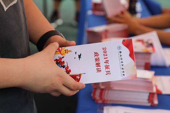 宣传现场充分运用门型展架、横幅、宣传手册等形式营造应征氛围,提高征兵工作的知晓率。咨询处,资助科科长张敏、霍晓宇老师耐心向前来咨询的同学讲解征兵要求、学籍保留、复学手续等相关政策,并向他们介绍大学生入伍优待政策,鼓励学生积极报名。