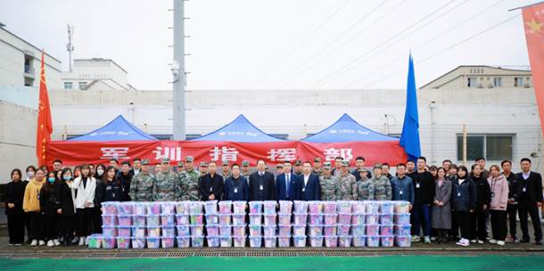 冯居秦院长一行向带训教官、指导员等发放食品、饮料、洗衣液、暖贴等慰问大礼包,学院的浓浓关怀极大地鼓舞了军训团的师生。担任军训团指导员的辅导员纷纷表示,将不辜负学院的殷切希望,用心关爱学生,强化学生的国防意识和爱国观念,提升学生的综合素质。