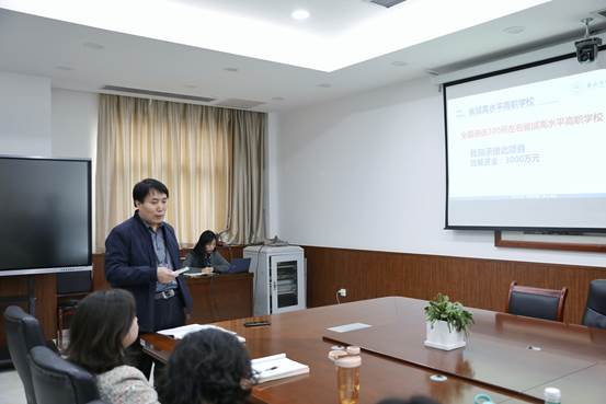 再次,按照张处长汇总的2020-2023年我院“提质培优”中央立项的项目做了详细解读,主要针对包括思政类项目、省域高水平高职学校、省域高水平专业群、省域高水平专业群、高水平专业化产教融合实训基地、专业教师“双师型”比例、校企双元合作开发的职业教育规划教材、职业教育精品在线开放课程共8项开展情况,存在问题进行逐一安排和部署,责任到部门,责任到人。为我院顺利推进和提高“提质培优”工作做了很好的推进作用。