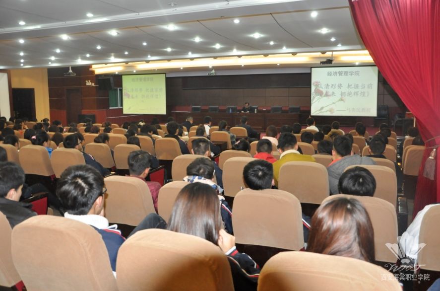 2015年11月30日晚自习,经济管理学院名誉院长马贵民教授应秦院长之邀,在学术报告厅为经济管理学院2015级全体学生作了《认清形势 把握当前 创造未来 拥抱辉煌》的主题讲座。