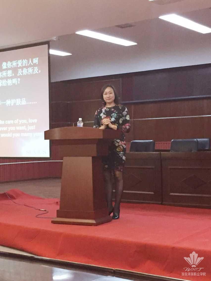 5月13日下午,在学术报告厅,中医美容学院邀请法国SUVIUS亚太区总裁杨璐女士为大一同学及部分老师做了一场如何从销售菜鸟到销售高手为