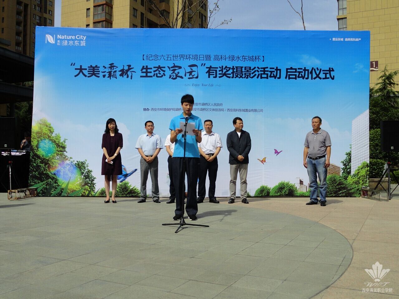 6月5日上午,西安海棠学院30名学生干部在团委书记石博的带领下,参加了灞桥区纪念六五世界环境日暨高科绿水杯“大美灞桥,生态家园”有奖摄影活动启动仪式。