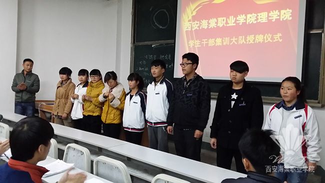 “我志愿加入理学院学生干部集训大队,热爱海棠学院,践行素质教育方针,勤奋学习,为校争光,时刻牢记海棠发展我的责任......”11月11日在理学院第一届团学干部大会暨学生干部集训大队授旗仪式上,经过理学院各教学班选拔推荐的80余名学生干部,经过一周的考核后推选出中队长、小队长等组织干部。
