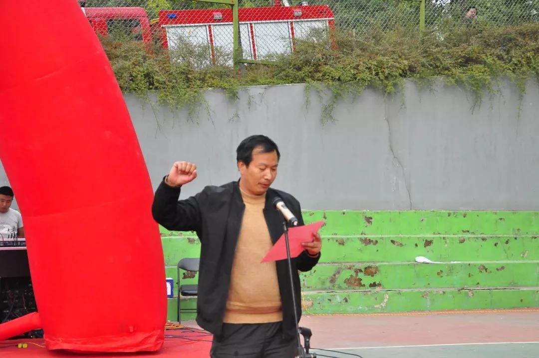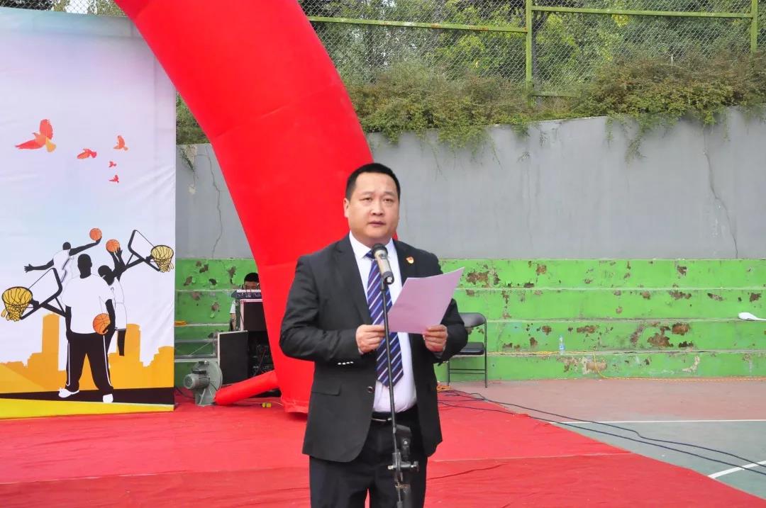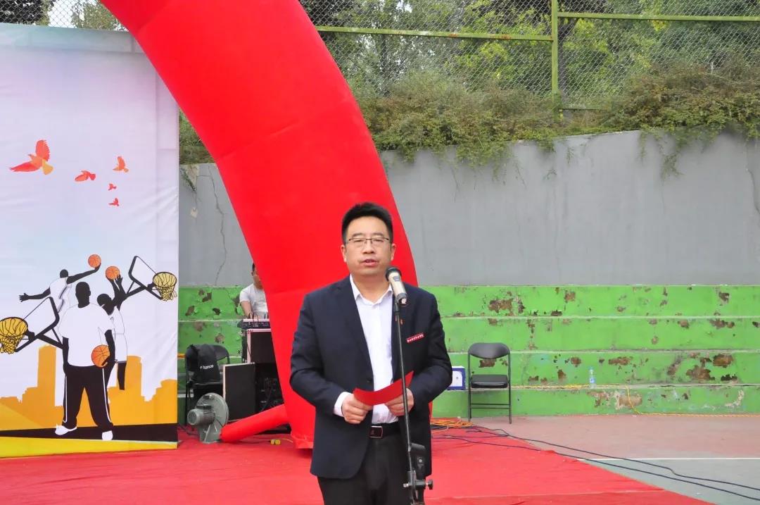 学生处处长王智锦宣读《关于举办第十四届“续力海棠梦·投递篮球情”篮球比赛的通知》文件。