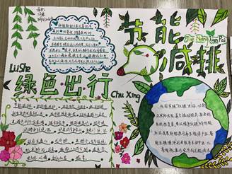 二、开展“节能减排 绿色出行”学生手抄报评比活动,学生作品择优进行展播