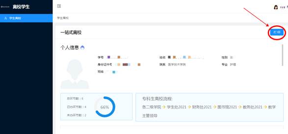 (1)学生本人登录离校系统查看个人离校手续办理情况、打印离校单。(具体操作附后)