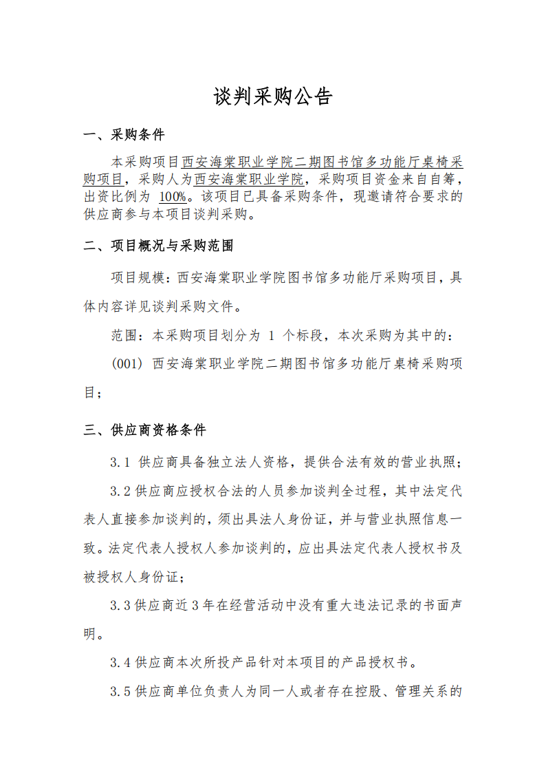 谈判采购公告