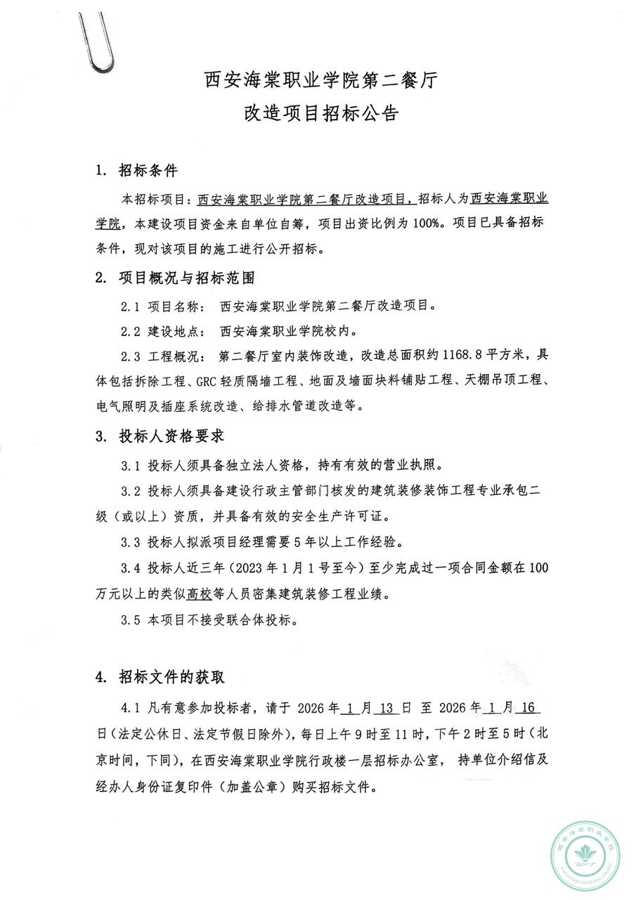 SUNBET申搏第二餐厅 改造项目招标公告