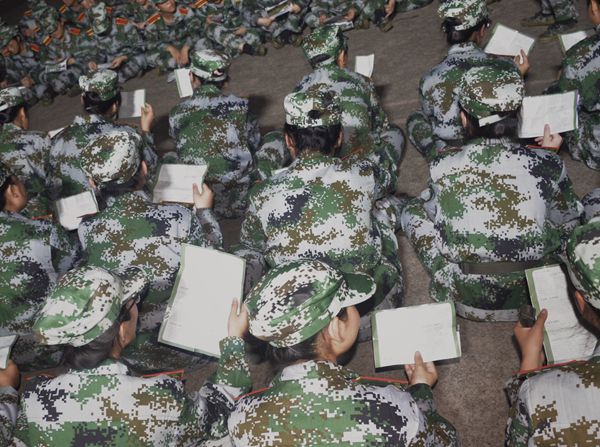 夜晚的五教灯光通明,与圆月相互辉映。我院2019级全体新生席地而坐,挥着开了手电筒的手机,唱着最动听的歌曲。“战士的生活就是这样,有苦有乐有声有色”一首慷慨激昂的军歌响遍整个军训场地。我院军训总负责人张湘黔看着这些正在欢唱的新生们,结合自己的成长经历,为大一的新生提出了自己的建议:“想家是不可避免的。大学要多交朋友,给自己的生活注入动力。我希望他们都能好好地,把大学四年的时光过充实。”朴实而诚挚的话语包含着张湘黔对学弟学妹们的关爱之情。此时,二营一连十排的一首《小幸运》带动了整个军训场的一千五百多名新生一起合唱,路过五教军训场地的大二大三大四学生也纷纷停下了脚步,加入了这场千人合唱。