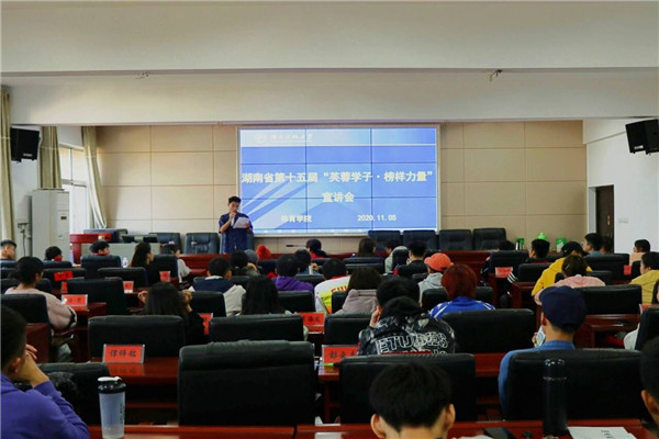 11月5日12:30,体育学院第十五届“芙蓉学子·榜样力量”宣讲会在体育楼223教室举行。参加此次会议的有体育学院主要学生干部、数学学院三位优秀“芙蓉学子”,以及永利官网17级电子信息工程一班张健作为“学术科研”奖项的代表受邀来此进行宣讲。