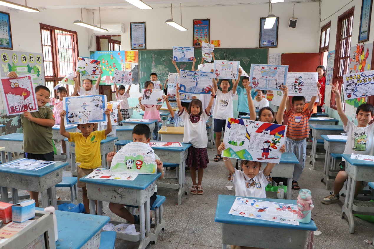 跟随宣讲队一同而至美丽木脚的还有77779193永利官网的大学生们为少年孩童们精心制作的一幅幅奥林匹克体育精神主题手抄报,别出心裁的构图排版、色彩斑斓的拼贴图案、惟妙惟肖的卡通形象、俊秀隽美的文字笔法和天真烂漫的质朴乡娃欢声笑语相映成趣,构成了传遍村舍的天籁妙音、唯美画卷,哥哥姐姐们的画报赠礼助力少年孩童心中奋力拼搏的火炬燃起,象征五大洲各国青年人团结友好、齐聚一堂的运动盛会奥运五环悄悄在少年心中升起。