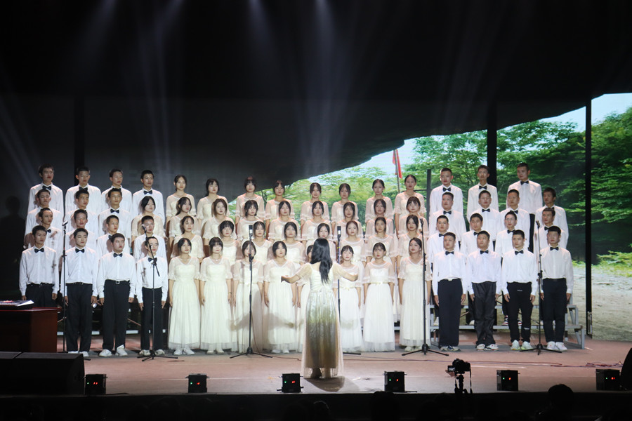 “草木会发芽,孩子会长大,岁月的列车不为谁而停下……”舞台上点点灯光汇聚,音乐响起,学院合唱团带来合唱《人世间》。学院合唱团娓娓诉说人世间的沧桑变化,道尽世间酸甜苦辣,引发在场观众泪目。歌曲唱出了青年一代不畏险阻、勇攀高峰的昂扬斗志与奋勇前行的热血,打造出一场视听盛宴。