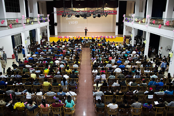 比赛还未开始,四大学部之间便开始了“舌尖上”的较量。“经济经济,力夺佳绩”、“演讲技术哪家强?体教三班田志昂”等特色加油口号此起彼伏。“本次演讲赛以‘勤学笃实 创于我行’为主题,分限时演讲和即兴演讲两个环节。”在主持人宣布比赛规则后,比赛在一阵热烈的掌声中拉开帷幕。