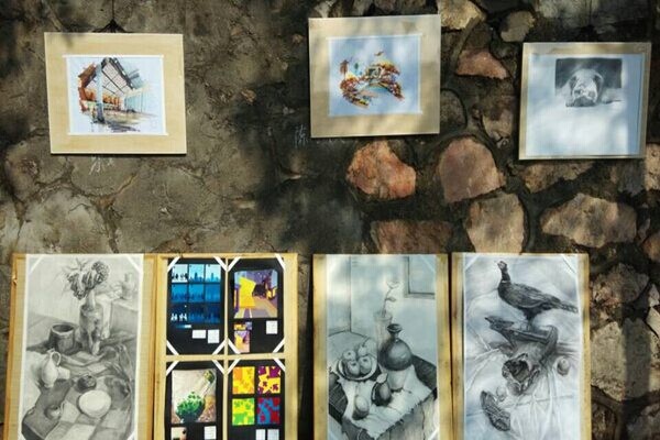 在书画展现场,一改平日只摆放作品的常态,两名男同学的吉他表演让画展文艺气息攀升。顿时吸引了很多同学的眼球,积极参与投票,为自己喜欢的作品增加人气。观展现场气氛活跃,同学反响热烈。“他们画得很好,很有意境,这次活动非常有意义。”谭老师拿出手机边拍照边说。