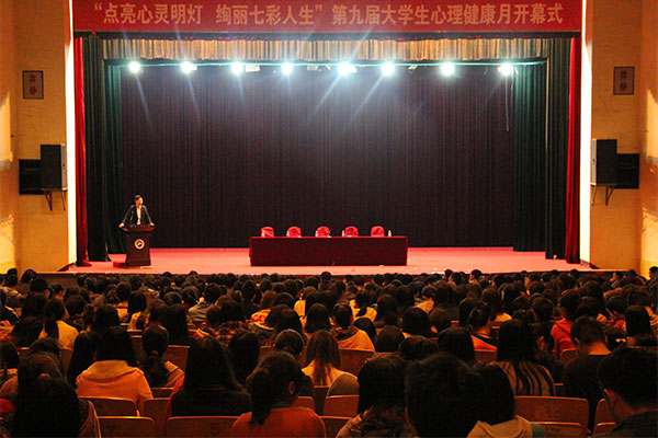 校党委副书记朱川曲致开幕词。他强调,大学生心理健康问题不容忽视。在学生工作方面,需要防范未然。心理健康是做好学习与工作的基础,心理健康月系列活动为大学生提供了锻炼自我心理素质的良好平台。并宣布,第九届心理健康月活动正式开幕。