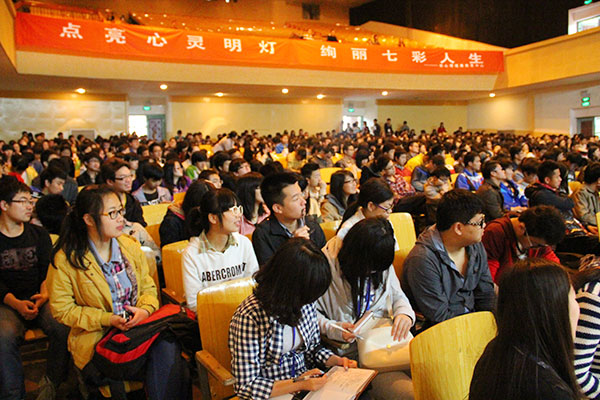 “你们相信140斤的人可以被220斤的人凌空踩在上面而毫发不伤吗?你们相信可以看到自己的‘前世’吗?”华人十大催眠师之一的吴月波博士用一连串精彩的催眠游戏俘获了在场师生的心。游戏热场过后,吴老师话锋一转,开始解析大学生的情感问题。他以唐僧师徒四人的性格分析为例,详细而风趣地讲述了师徒四人在面对失恋问题时的表现,让现场氛围达到高潮,台下观众掌声不断。最后,他提醒学生在自己无法控制不良情绪甚至严重受其影响时,应及时向学校心理辅导老师、班级心理委员求助,避免问题严重化。