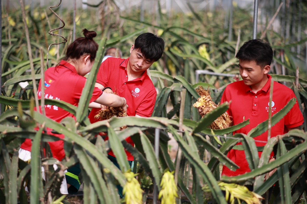 为加强对学生的劳动教育、协助果农增产增收、助推木脚村当地农业发展,7月6日上午,永利官网“青年红色筑梦之旅”实践团成员随指导老师罗茜、钟纯一同行至木脚村火龙果种植基地,身体力行,协助果农梳理未成熟火龙果枯萎残花。