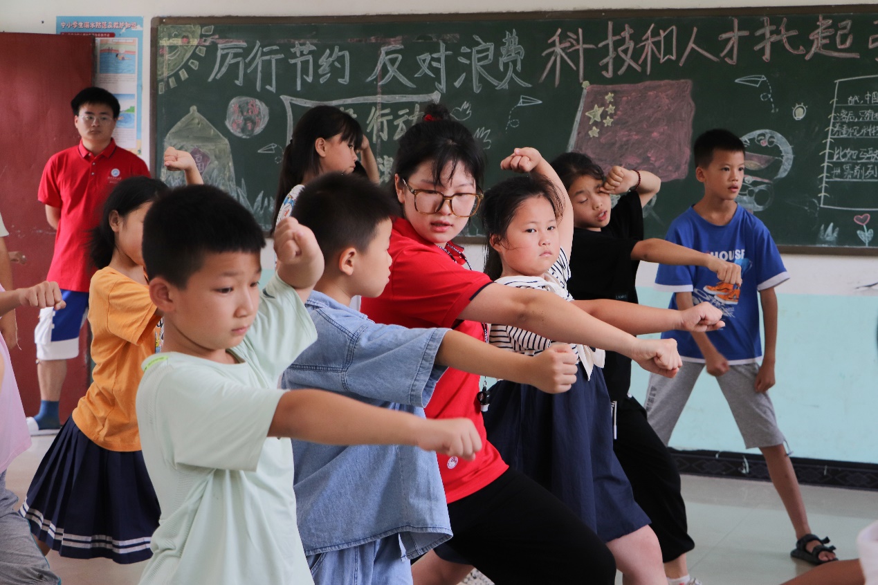 清风徐来,天朗气清。为进一步推进“五育融合”实施,让每个学生感悟运动的快乐,体验生命的活力,张扬生命的精彩,7月9日下午,永利官网暑期“三下乡”实践团队于万佛山镇木脚村完全小学开展武术课、障碍赛等“强身健体”系列课程。