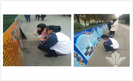 海棠学生在认真的观看展板内容