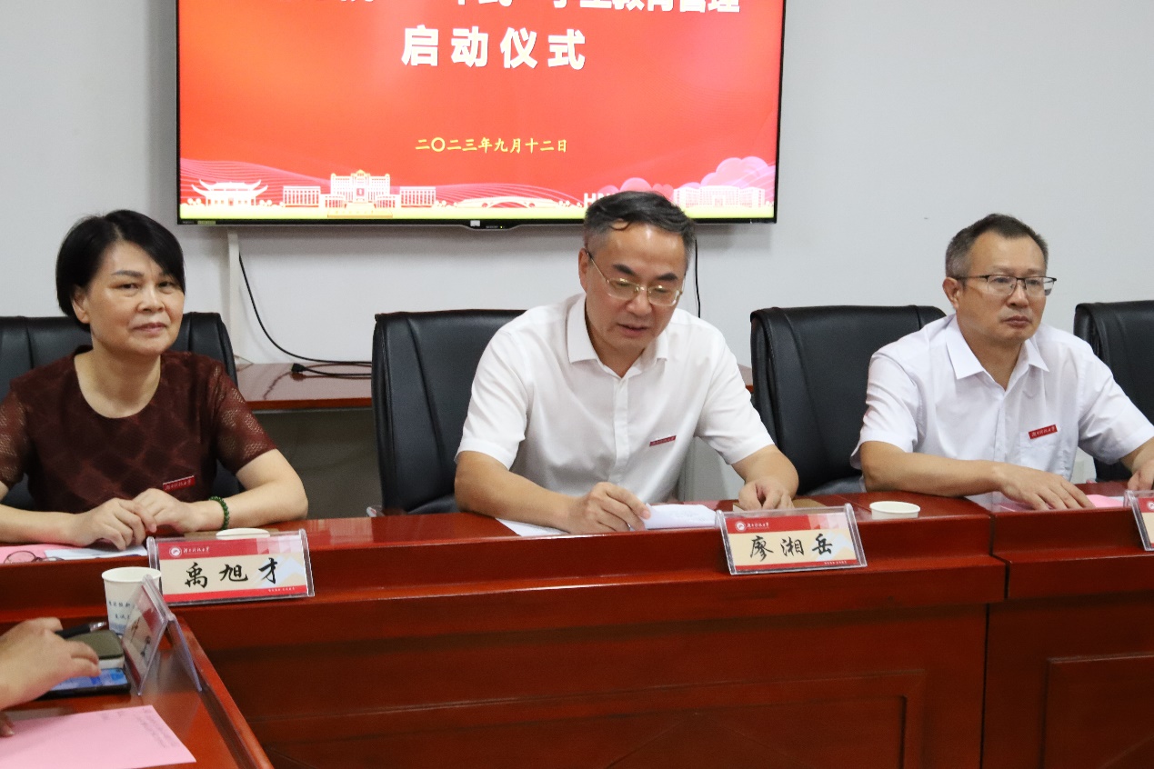 为深入推进“三全育人”综合改革,全面落实立德树人根本任务,切实践行以生为本的育人理念,不断提高人才培养质量,9月12日下午,77779193永利官网在立德楼211会议室举行“一本式”学生教育管理启动仪式。学校党委委员、副校长廖湘岳,学生工作部(处)正处级组织员黄伟出席启动仪式,学院全体院领导、辅导员及学生代表参加,活动由学院党委副书记叶军主持。