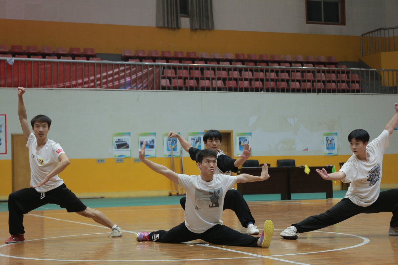 舞蹈串烧《got the honey venom》将现场氛围再次推向高潮。随后,武术表演《破阵》,表演者一招一式气吞山河,拳法、棍法、剑法悉数上阵,刀光剑影令人目不暇接,给同学们带来一场视觉上的饕餮盛宴。模特部带来一场别样走秀《neflibata》,模特们飒爽的气质和超燃的台风,引来台下热烈反应。以舞为始,以舞结束,本次军训慰问演出在艺术团全体部长带来的舞蹈《5G冲浪》中落下圆满落幕。