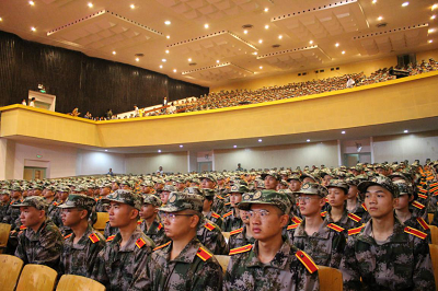 在开学典礼上,余蓉晖为新生解读学校学籍管理规定和课程考核管理,并对新一届潇湘学子提出期待和要求,希望新生们能严格遵守各项规章制度,做一名遵纪守法的合格大学生。随后,她对新生提出“一看二问三跑、两泡、两吃”的学习要求。“余院长的“两泡,两吃”不断地在耳边激励着我为未来、为梦想,奋勇拼搏,为潇湘增光添彩。”永利官网新生环艺一班邹宇轩在军训感言中写道。